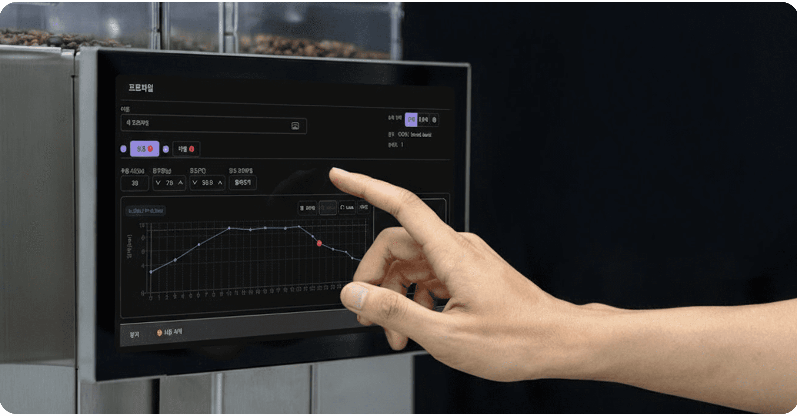 추출 시간에 따른 압력 제어, 0.1 단위의 온도와 원두량 설정 등